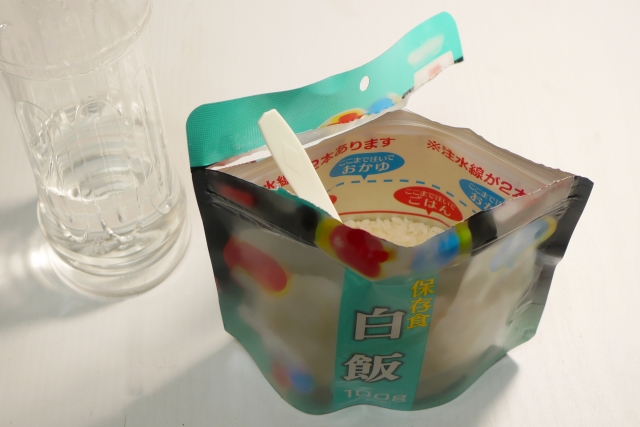 いっしょに水も添付されているので、水が手に入らない環境でも食べられます。