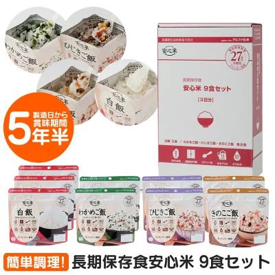 食物アレルギーの原因となる、特定原材料27種類を使わない安心米のセット。